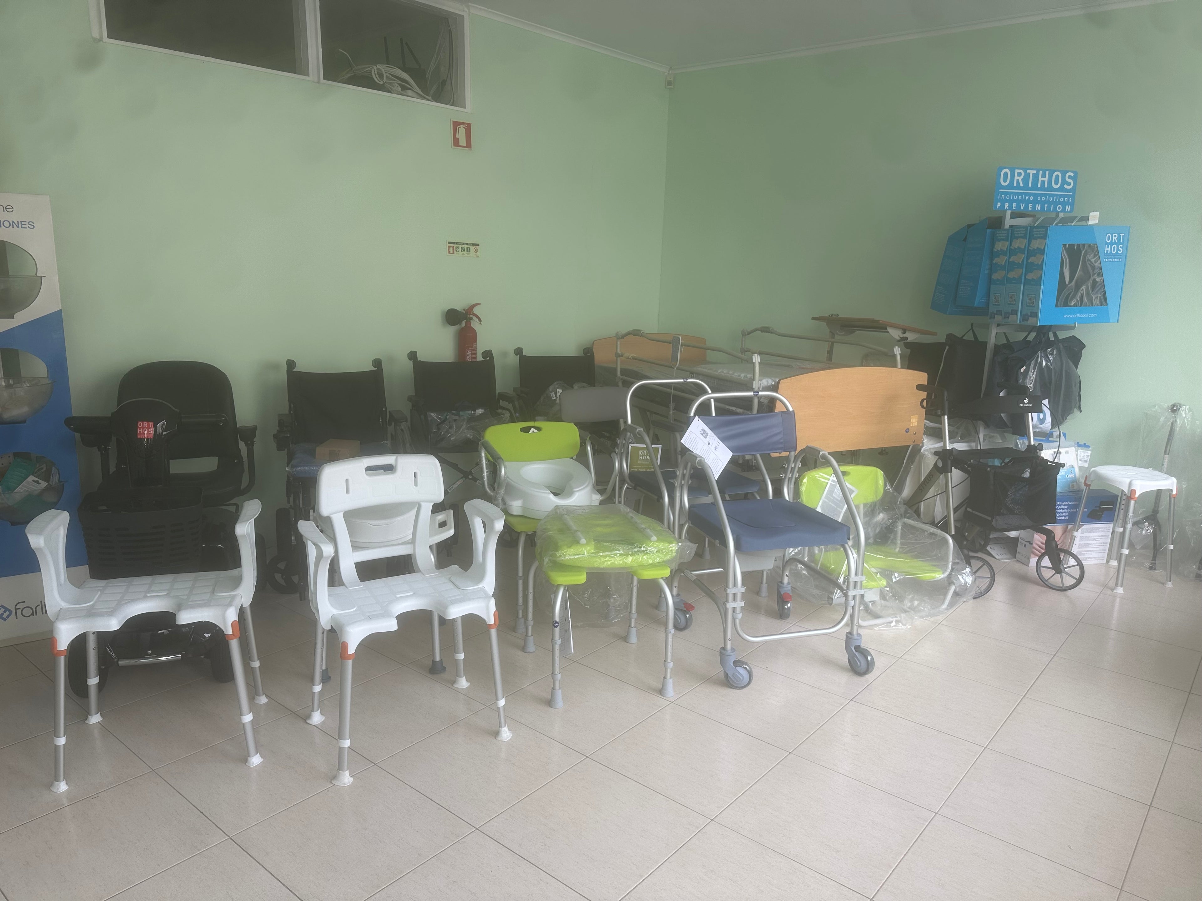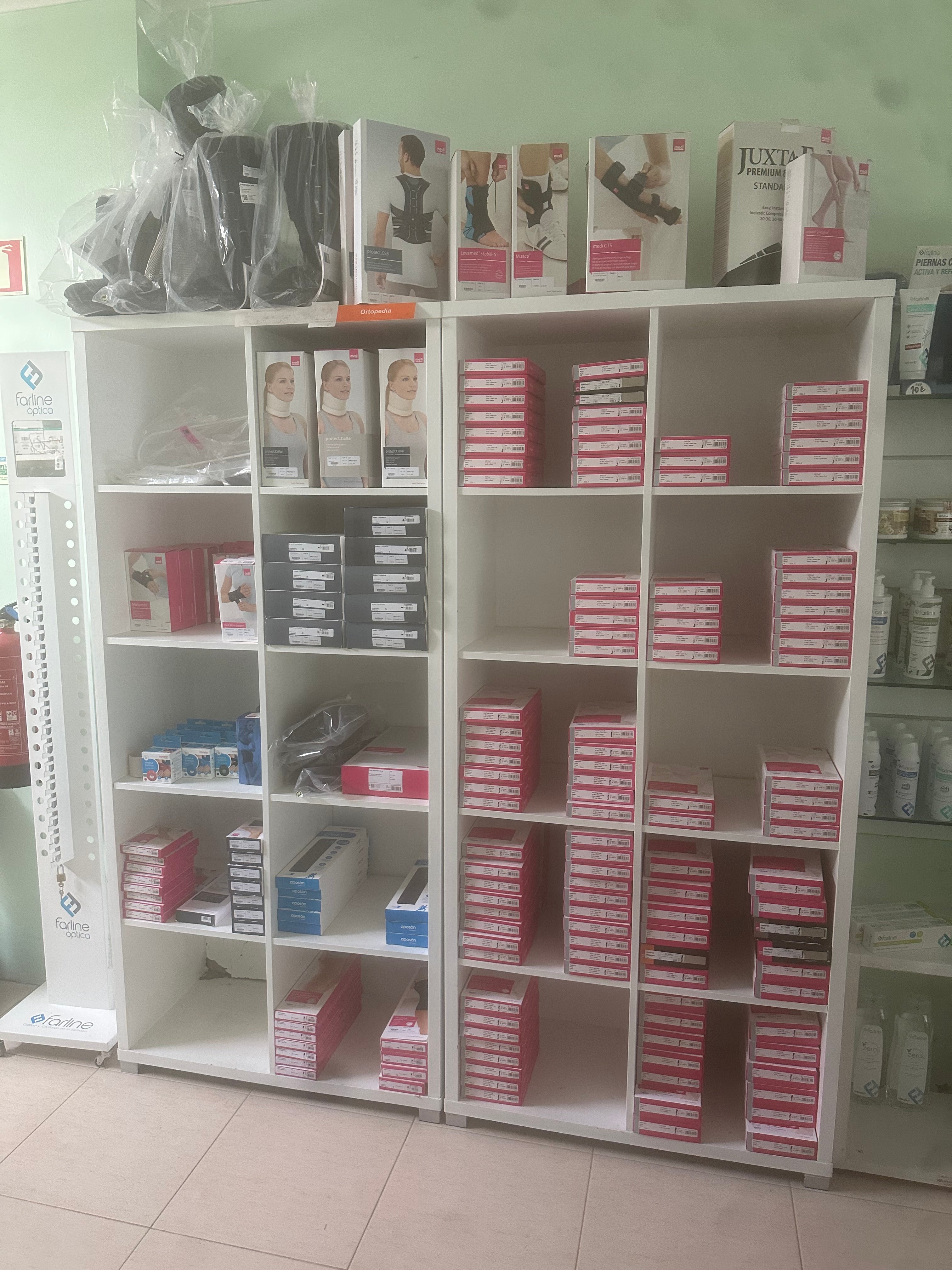 - Material ortopédico variado: joelheiras, ortóteses, tornozeleiras, cintas, etc.